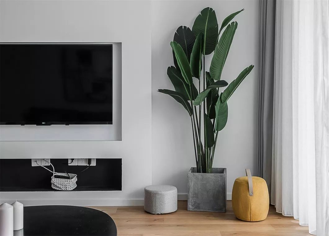 1、原本的户型从进门的位置到客厅的阳台是对通的,所以在进门的位置做了一个小的玄关,在不影响的过道走的情况下做了小的屏风。