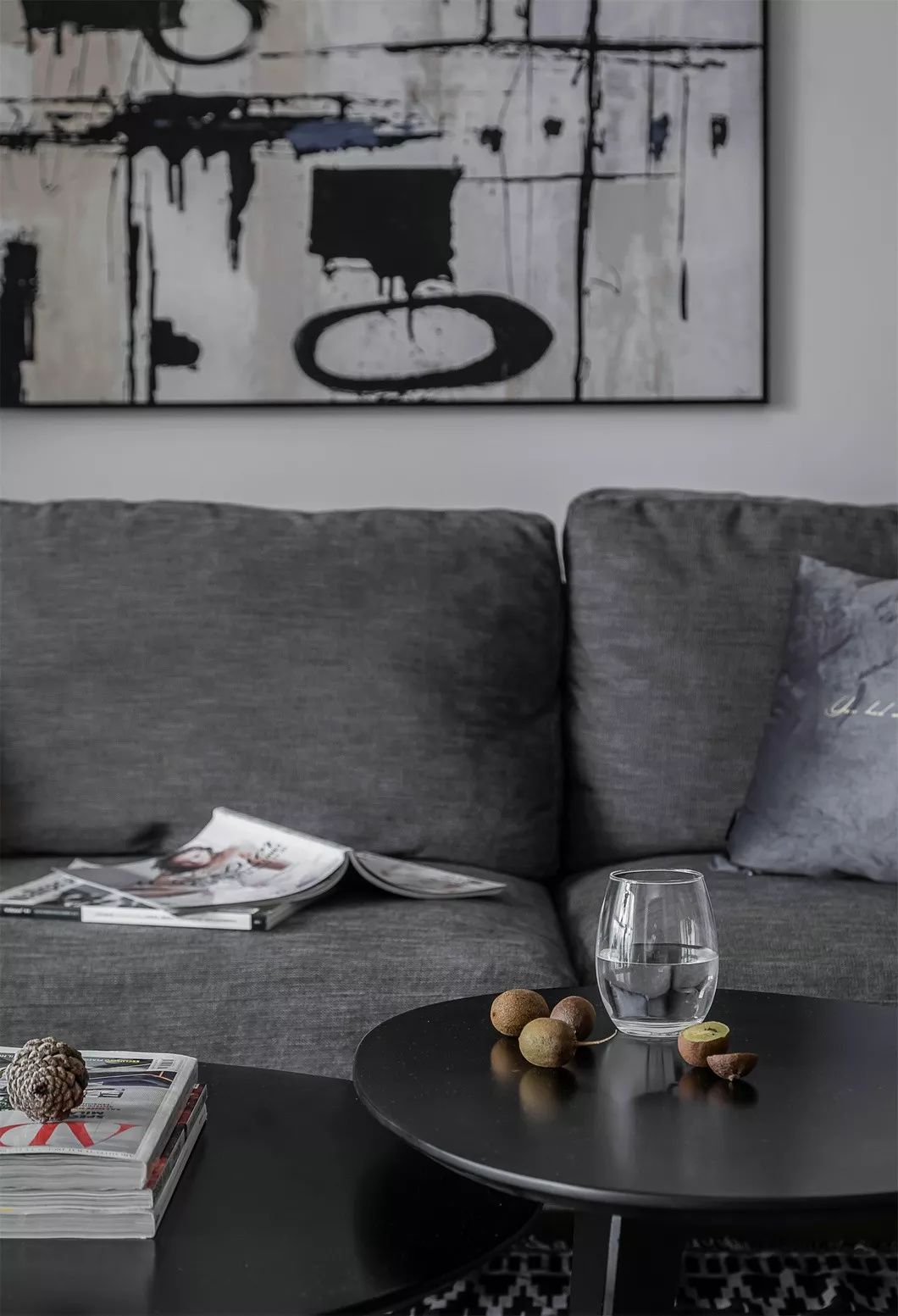 居住的质感不是靠物质的华丽堆砌,而是借由适宜的光线、材质元素的搭配以及经过细心计算的生活动线,交织成凌驾于奢华之上的纯粹空间。黑色的彰显与白色的内敛,搭配上灰色软装,在空间中产生了互动对话。