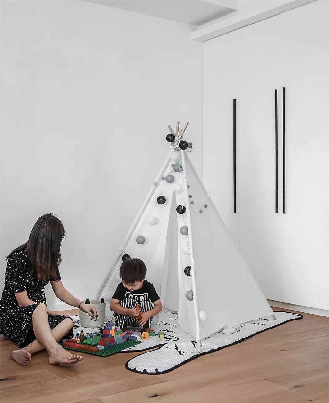 充满童心的挂画营造出了别样的艺术空间感,家长和孩子在此享受简单快乐的亲子时光。家长和孩子的互动,不仅有助于孩子的发展,父母也可从中观察孩子的成长历程。