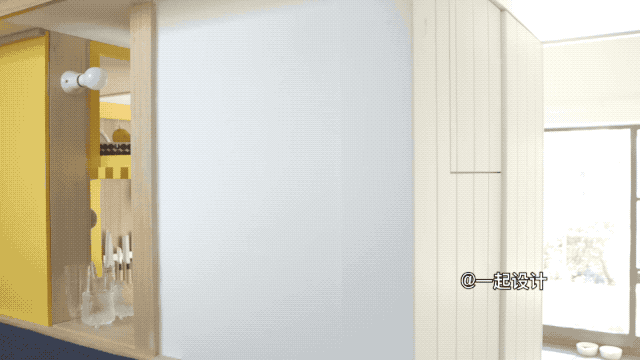 因为大白墙上面开设了一面窗户,另一侧与厨房相邻的地方还有一个开口,有效模糊了两个空间的界限。想喝水的时候非常方便哦~