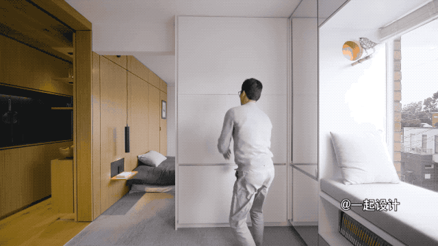 比如:飘窗旁边的白色墙面,经过打开折叠之后,就可以变身为一面电视墙;