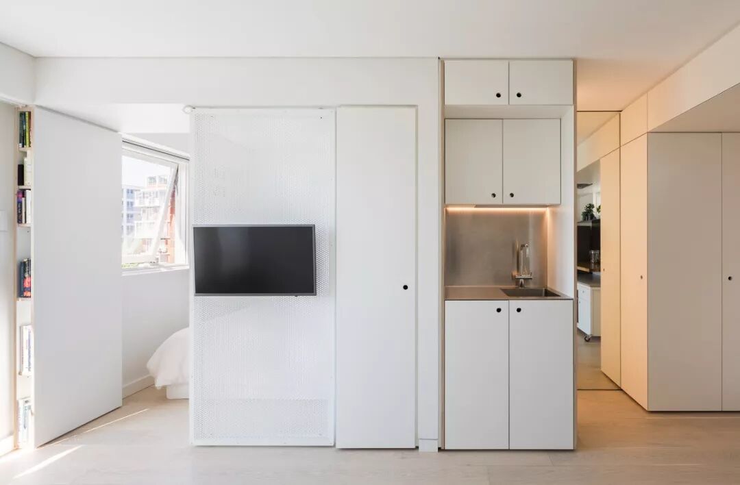 纯白色的主调具有提亮空间的作用,加上多功能的隐藏式设计,可以挖掘出更多的空间面积,整体看起来既实用又美观。