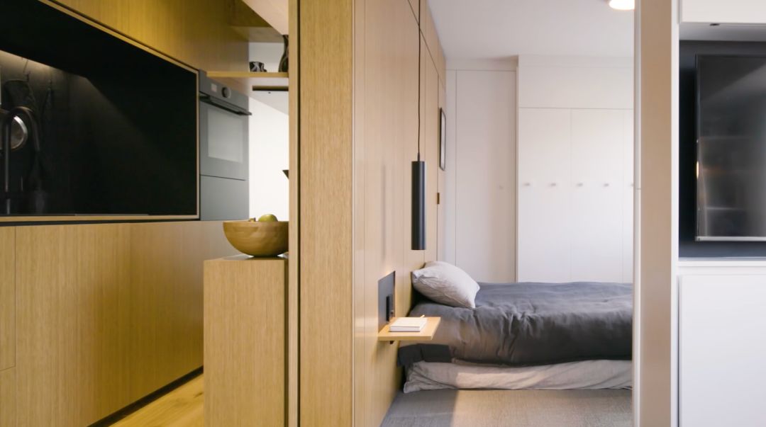 在这个较为紧凑的空间基础下,小户型的短板借由多重隐藏式设计完美化解,并以轻盈的木质或玻璃移门代替了实墙隔断,真正做到“小空间里也有大精彩”。