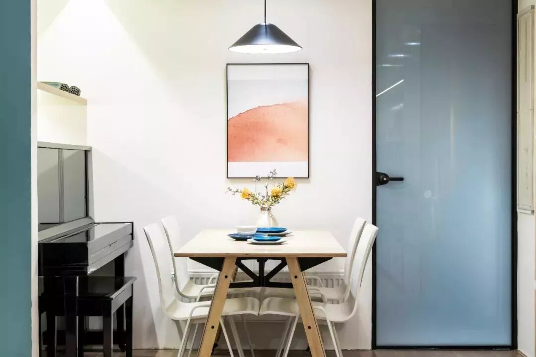 设计师将钢琴放置在餐厅空间。