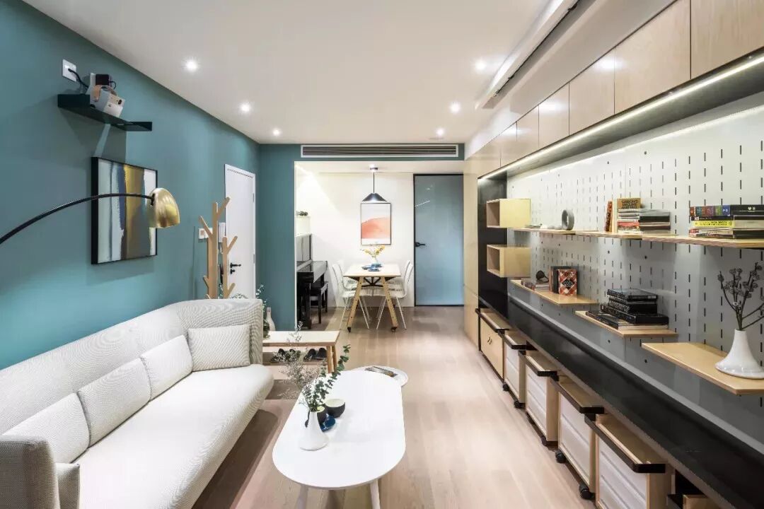利用整面墙打造出的丰富储纳空间,