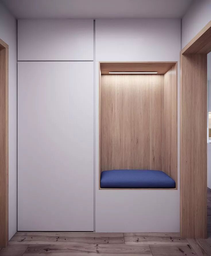 壁柜的深度可以设置在 350mm—400mm 之间,上方用于储物,下方便于换鞋,如果拥有足够的走道空间,也可以达到 400mm 以上。