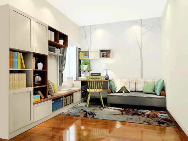 △次卧+书房系列,如果是长久居住,为家人选择一张正儿八经的小睡床会更适合,毕竟榻榻米变床,取放物品时还是得一顿收拾~