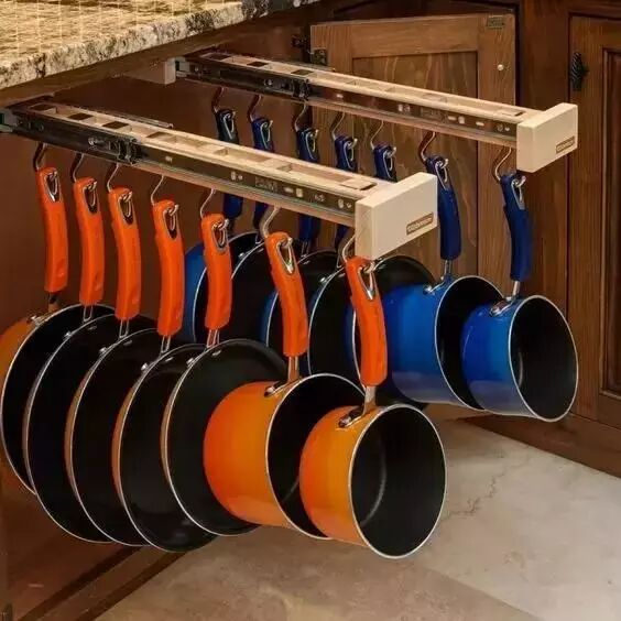 5.厨房地柜购买一个专门用来存放锅的架子,不但整齐、还能存放好几个锅。