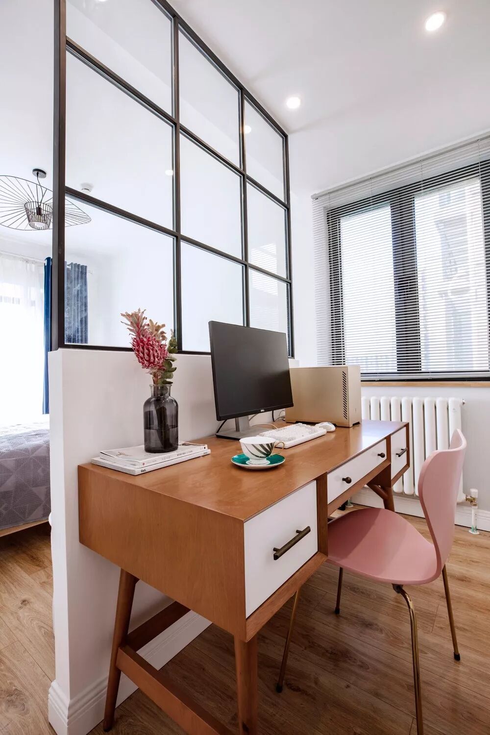 主次卧打通后做了一个隔断,隔断后设计成简易工作区。
