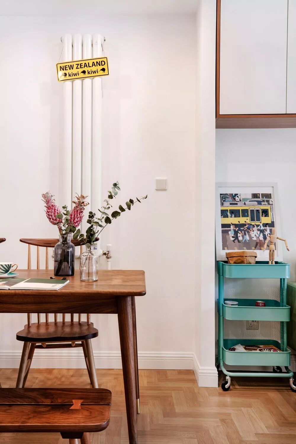 这是一套面积仅80平米的小户型住宅,业主喜欢北欧风格,觉得只用黑白灰很单调,希望小范围里可以搭配鲜亮色。家里只有业主夫妻居住,设计师将原始的主次卧打通,改造成一个大套间。
