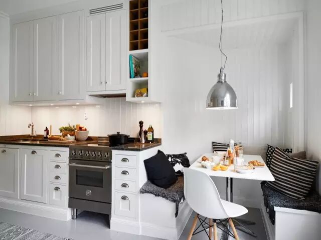 主人真的很会利用空间,就像这个藏在厨房角落的早餐区,简直就像一个舒适的咖啡馆。卡座的设计能更好地利用不规则的形状,看起来也更加有情调。