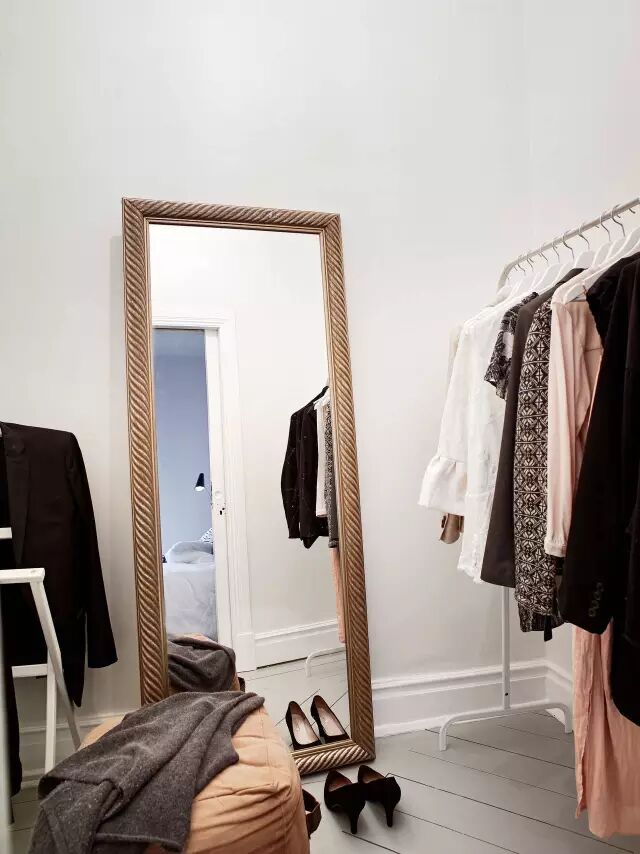 衣帽间空间不算很大,但也够用。几个衣帽架挂上当季经常穿的衣服就行了,至于其他的衣服,屋里藏起来的收纳空间多着呢~