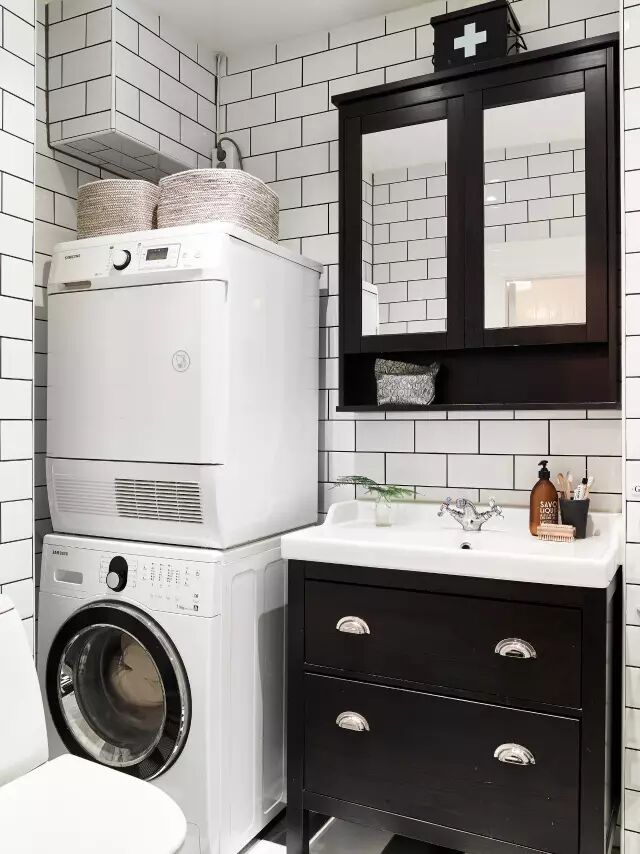 洗衣机和烘干机摞起来放,节省空间。