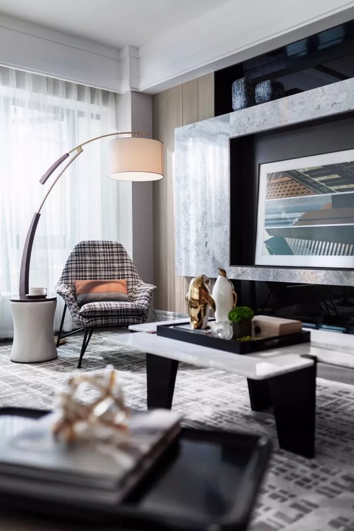 设计师用现代简约设计手法来铺陈空间,大面的落地窗拥有极佳的视野。