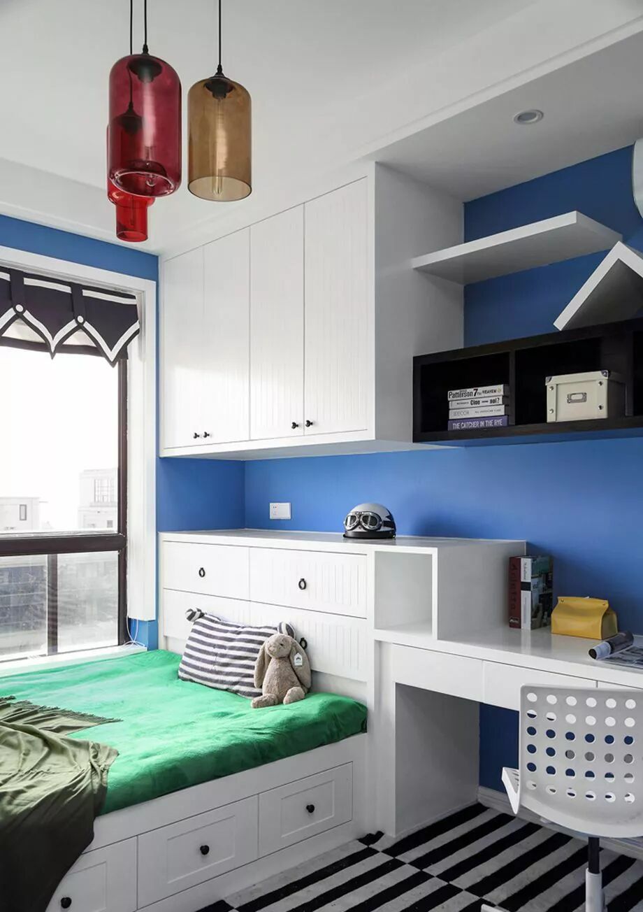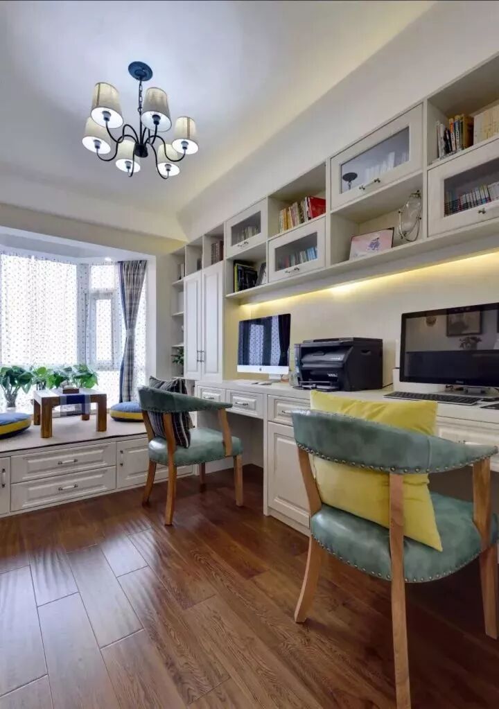 如果因户型面积受限,无法拥有一间独立书房的话,可以把卧室打造成一个小型书房,更能展现一分恬静的感觉。