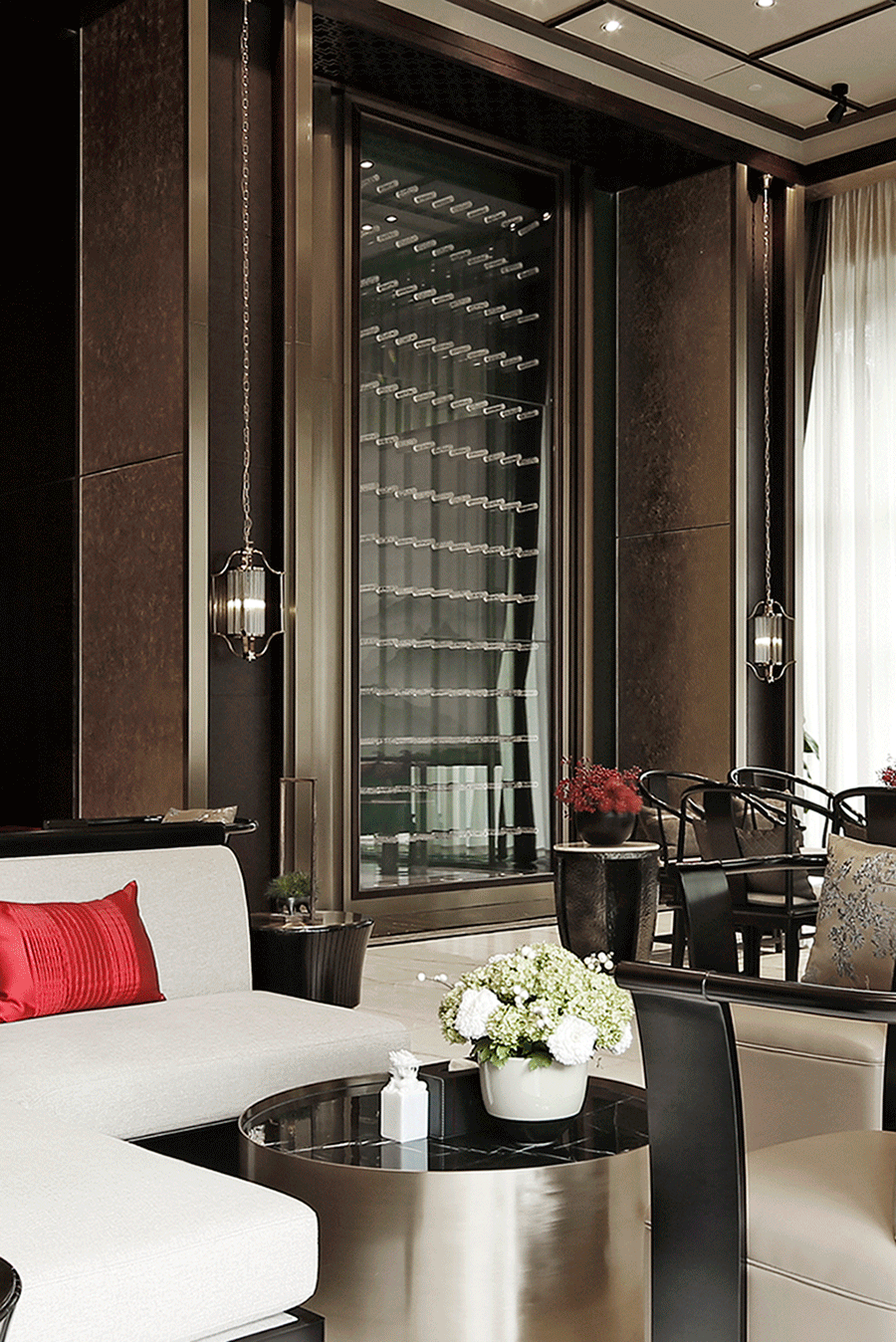 俨然屋宇下,墨白素雅的空间里,设计师赋予器物陈设古朴的型制,光影下的富雅,在灵魂深处灿溢涌动出古典的情蕴,尊贵、优雅的生活方式于此蔚然成形。崭新的宫殿楼阁,少了一点沧桑,多了一份自然浑和与动人心魄。蔚为大观的艺术世界,品咂不尽的悠悠情味。