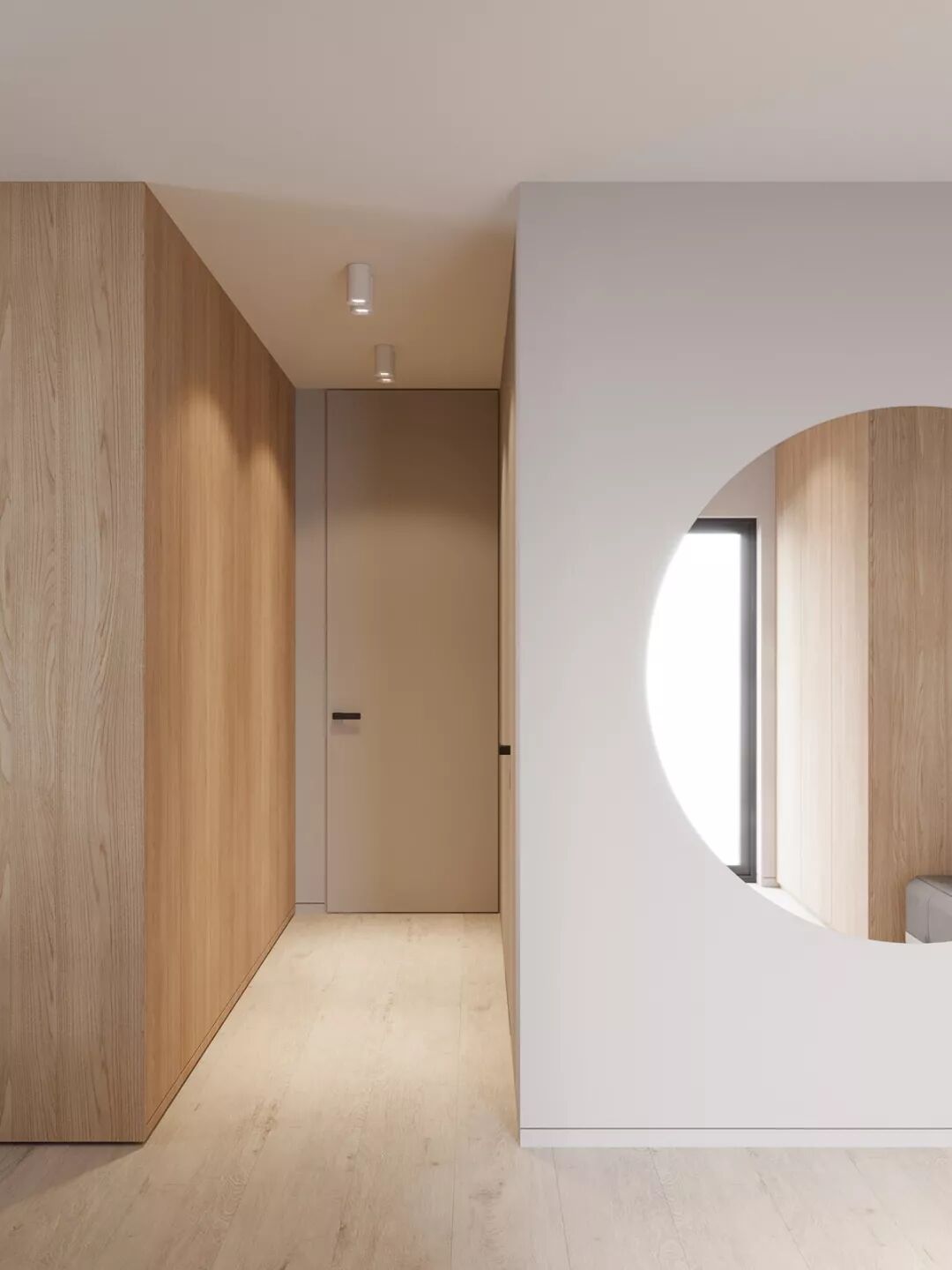 玄关的定制大衣柜,没有做任何造型,简单大方。隐形门的设计,没有任何繁杂,干净利落,也是将简约做到极致。木质的清晰纹路,更添原汁原味感,与白墙相对,静谧而温暖,仿佛随意的一米阳光洒进来,都是无限美好。