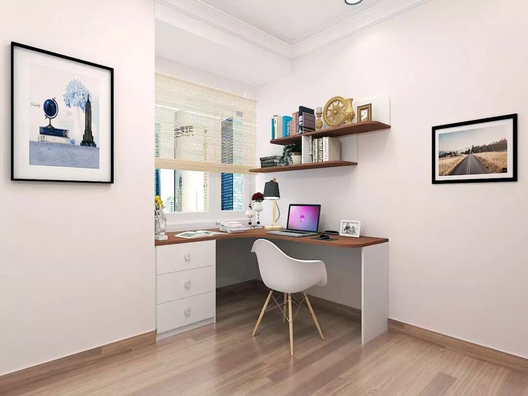 如果说飘窗书桌是对天然位置的有效利用,那么转角书桌,则是对低利用率位置进行高效利用!