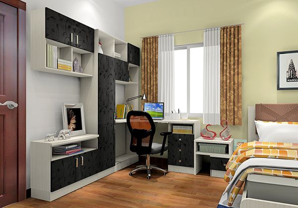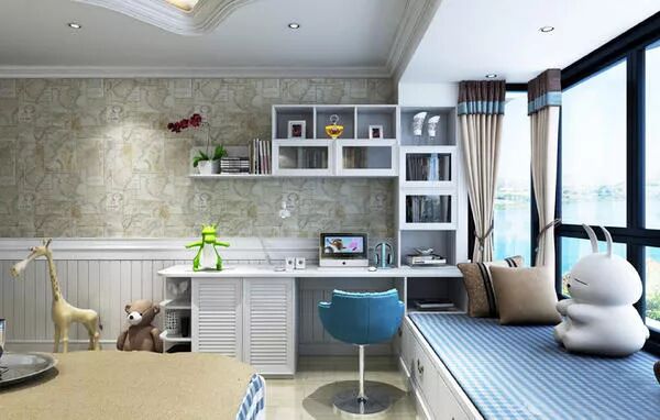 较长的飘窗,可以考虑高低柜设计,抬高的柜面做书桌设计,矮柜可做收纳,也可以保留飘窗的休憩功能,可塑性更强。