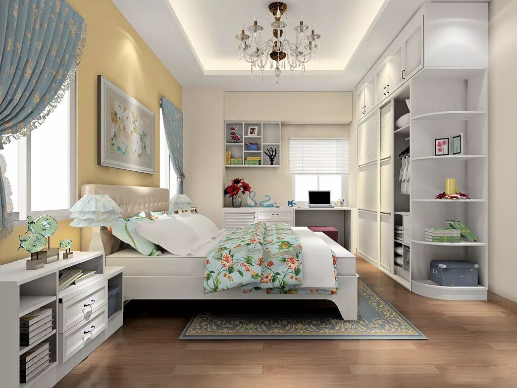在转角区域做弧形的书桌区,半包围的设计更有分区的仪式感,书桌面积也更大,是对小卧室很友好的设计~