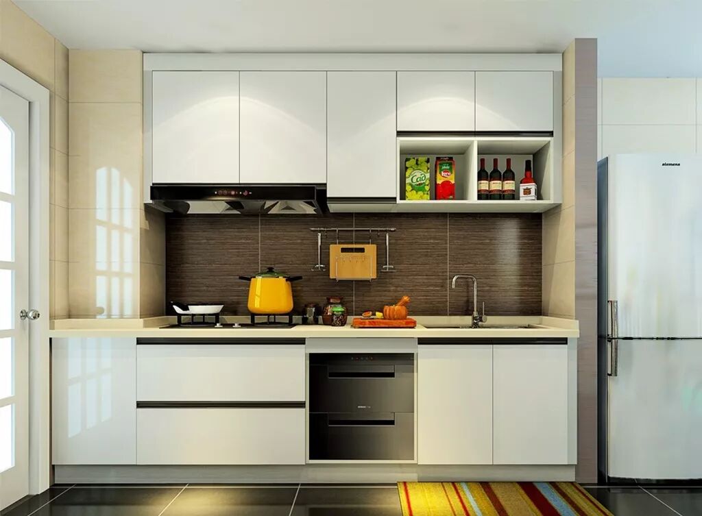 一字型橱柜可以说是最简便的橱柜布局了,让洗菜区、烹饪区、切菜区并排成列,变得一目了然。