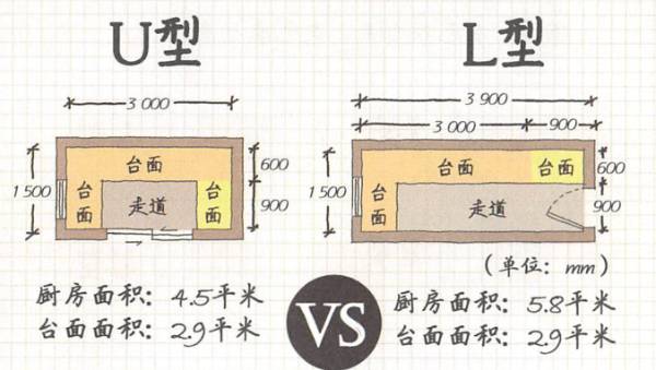 某个小厨房净宽1500mm,如果是以下U型和L型布局的方案比较。