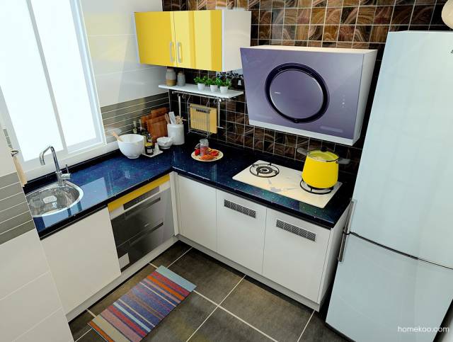 吊柜:相对于地柜来说,就简单多了;通常由收纳柜和油烟机组合而成。