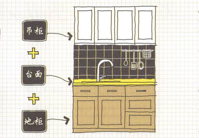 橱柜是好用厨房的第二个要素,虽然橱柜的外观风格各异,价格千差万别,但是它的最基本形态永远是‘上中下三段式’。即吊柜+台面+地柜;