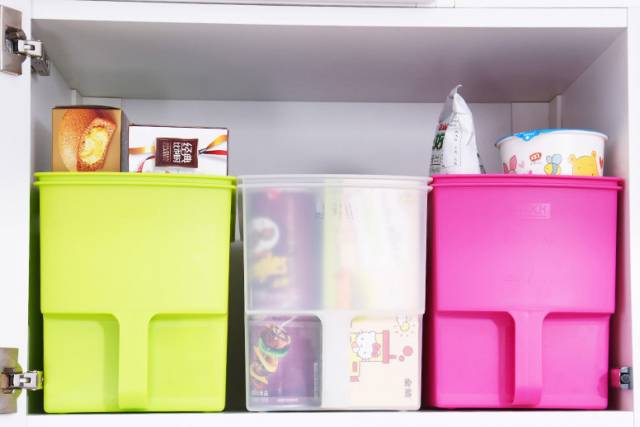 竖放--作为最最基本的收纳技巧,在任何时候都适用,地柜也一样;假设有五六个盘子叠着放,如果要拿出最后一个,必须把上面的4个拿开才能拿到最后一个;如果是竖着放,想拿哪个都是轻而易举的;