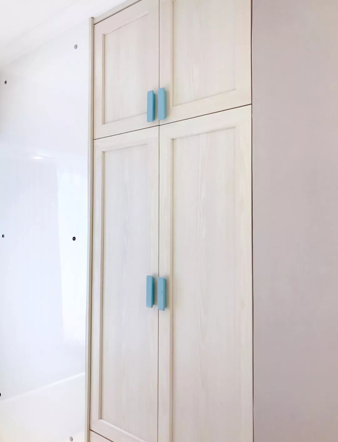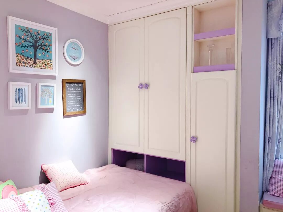 房间有凹位,填补衣柜就正好,到顶的设计增加了不少储物空间,小宝贝的衣服妥妥放置。