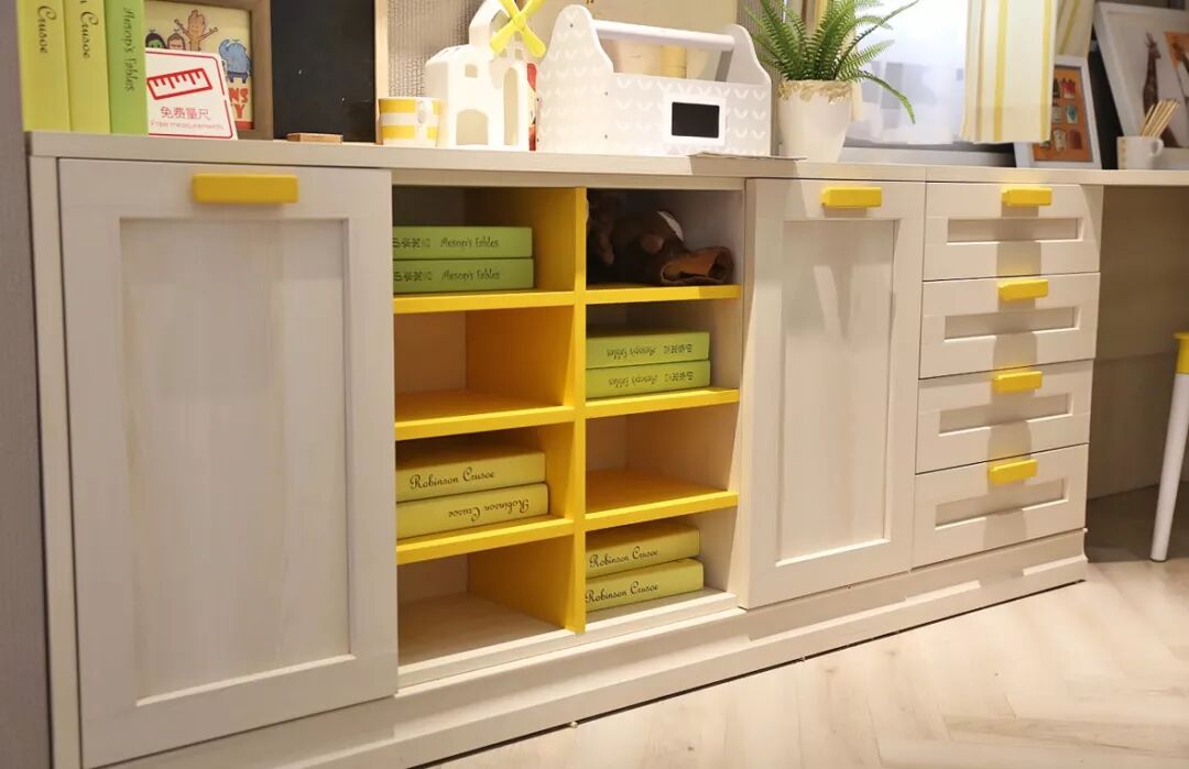 飘窗太小不好利用?书桌拼搭飘窗柜就不错,一来保证了孩子学习有足够的光线,二来这个转角位置也能得到充分的利用。