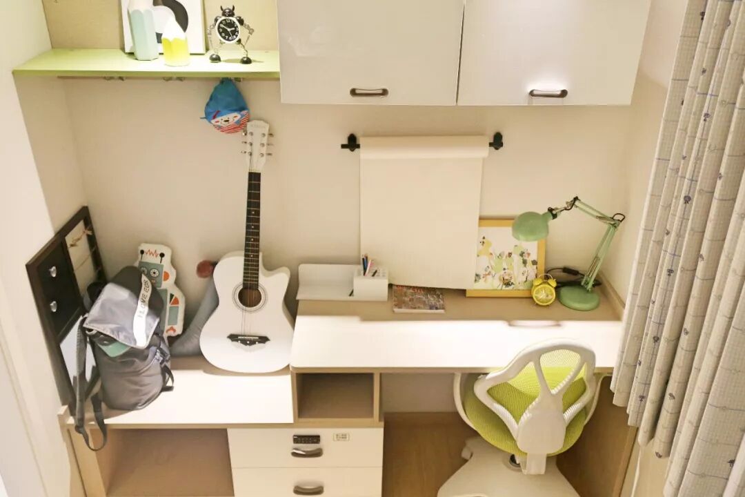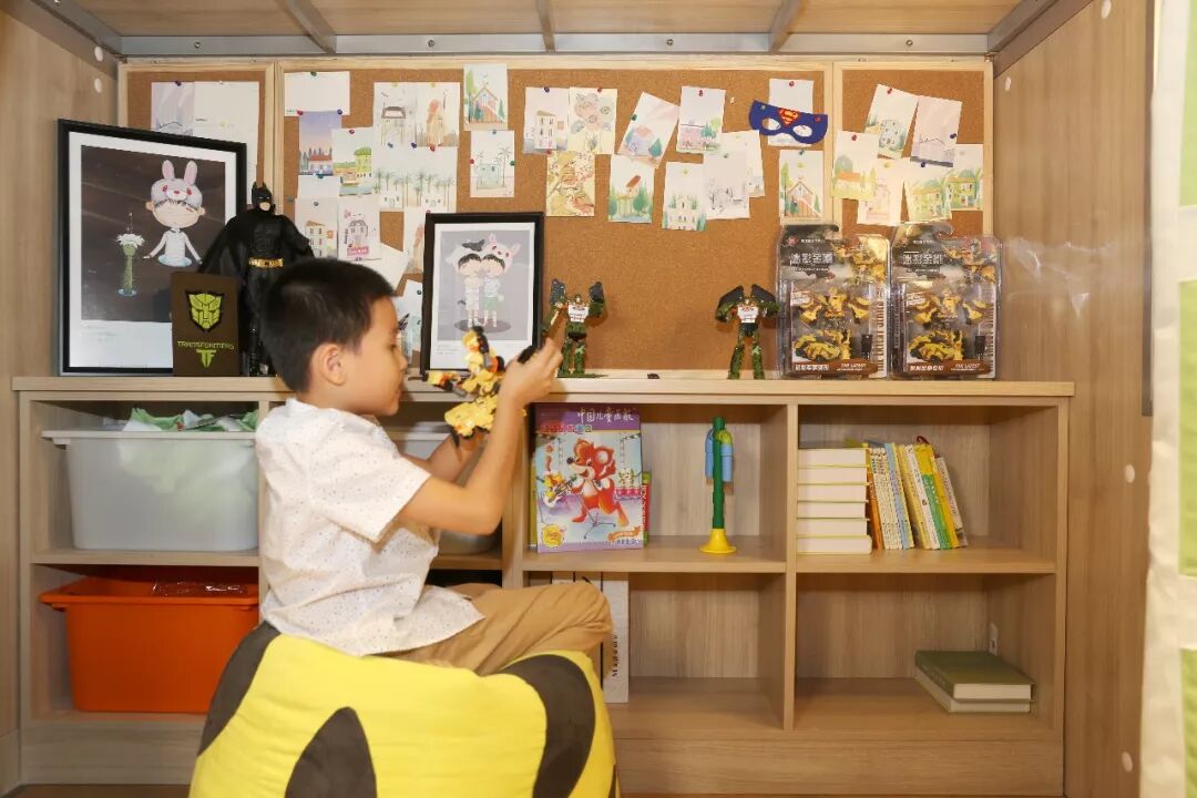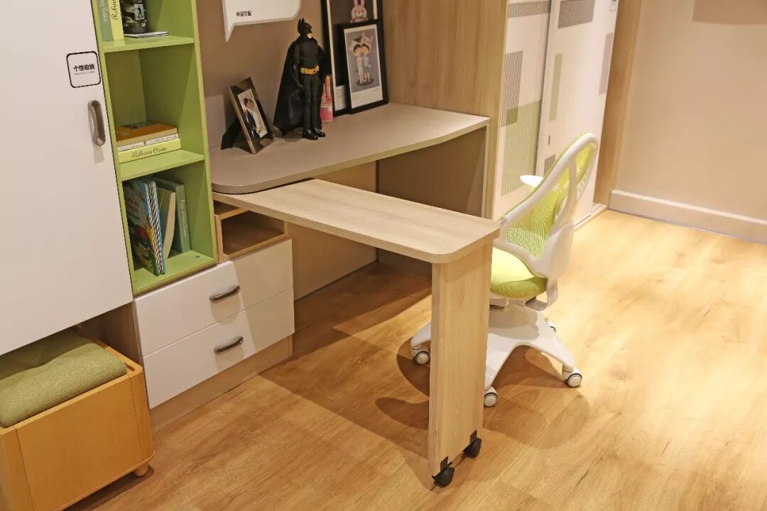 下旋转书桌,拉出是小主人与小伙伴玩耍、做手工的1㎡空间,收起则是宽敞的房间。