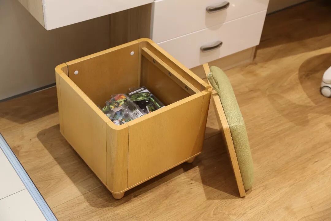 斜角书桌设计便于调整儿童坐时方向,更加方便于长辈的陪伴和学习遇到问题时对长辈请教。(另外告诉你一个小秘密:陪伴凳里面还可以储物哦~)