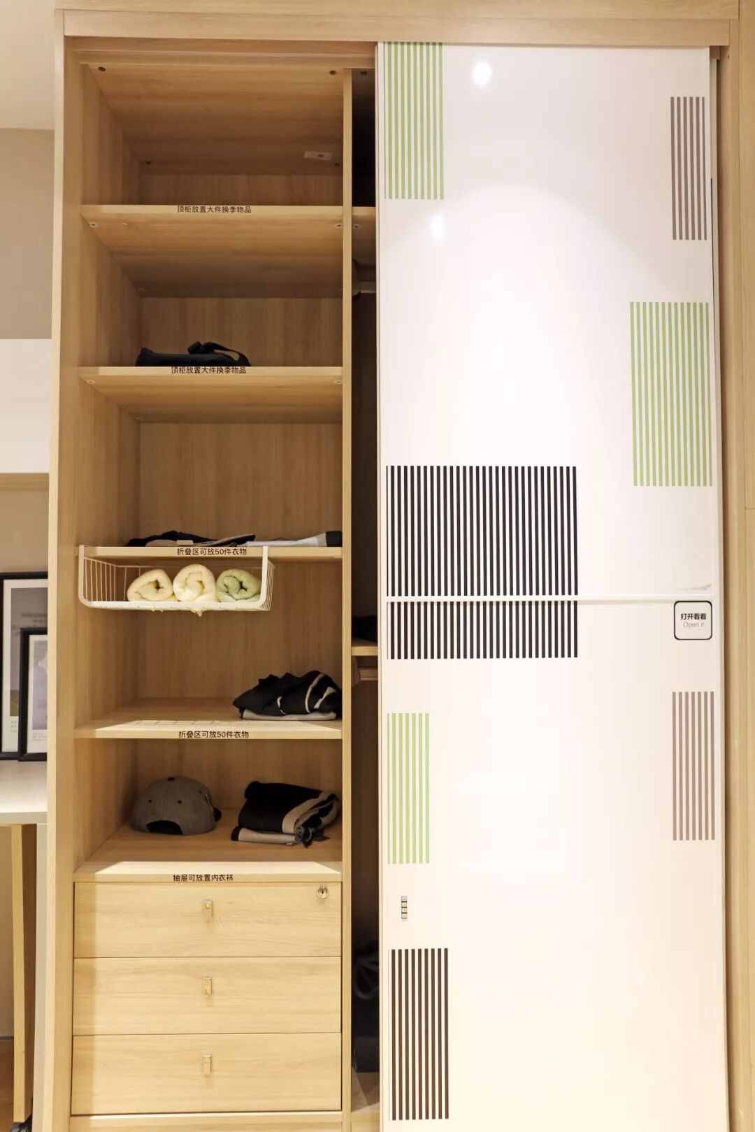 大容量的生活方式衣柜,满足处于成长期孩子的衣物存放需求,衣服、内衣袜子等都能实现分类存放,想找的衣服一下子便能找到。