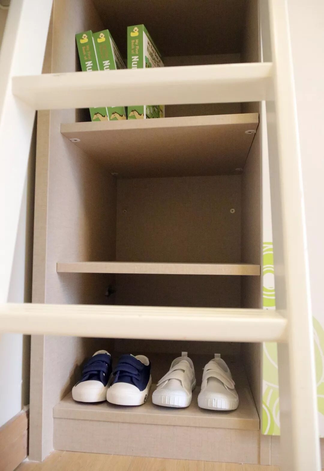 帘子拉开后,是一个惊喜的玩乐空间,开放式的储物格,可以收纳很多孩子心爱的玩具,在这里,能待上一个下午。