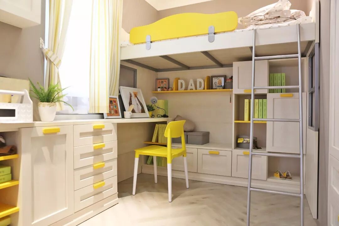 如何在一个小空间同时满足孩子学习、休息、玩乐的需求?答案是上下床,上床休息,下方便是孩子的玩乐区,垂直空间得到很好的利用。