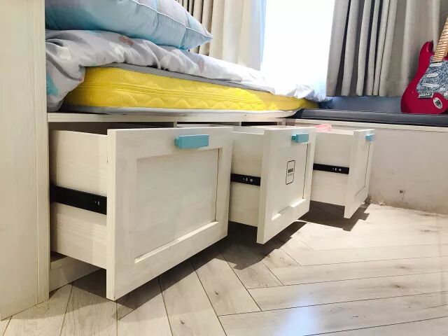 有飘窗的家庭,可以试着把飘窗与床相结合,这样一来空间会更加紧凑而实用。