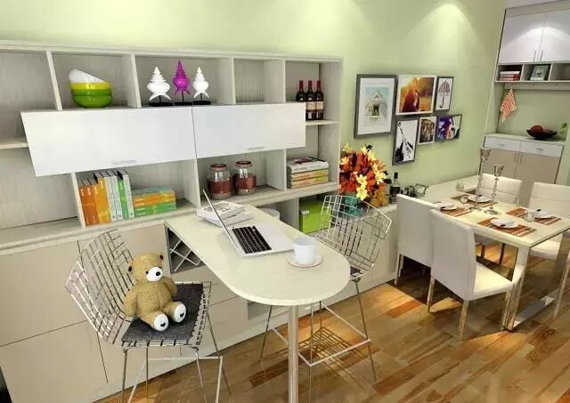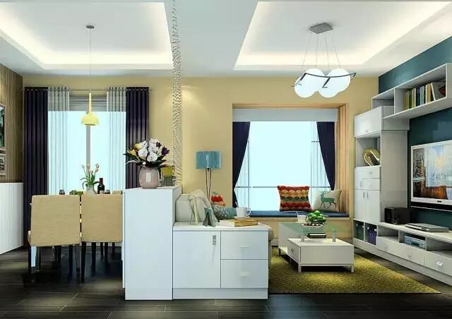 ①利用电视柜、屏风和餐边柜围出了一个餐厅,妙!