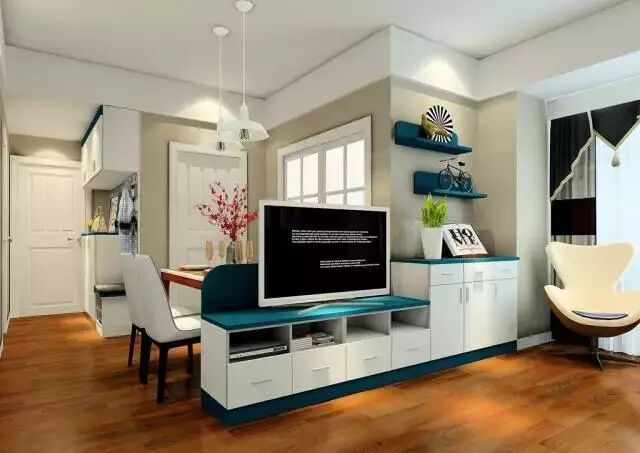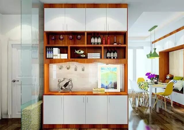 ②电视柜、餐边柜在隔断的同时还能做很多收纳。