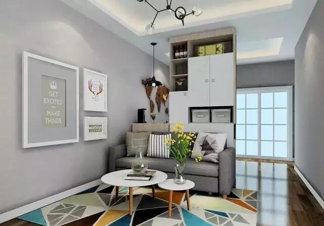 ②沙发算是顺势而为,靠在储物柜上背后有了“靠山”,风水更佳;储物柜顾名思义,在隔断作用之外还能放很多东西;而珠帘这么一挂,小小的居室顿时增添了不少温馨浪漫。
