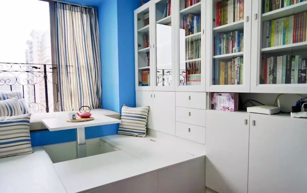 在阳台设计榻榻米+书柜组合,一个小书房便有了,拿上喜欢的书在这里翻阅,时光慢而美好。