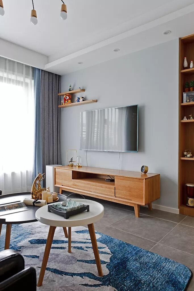 电视柜、茶几使用了暖暖的木色,营造了一种温馨舒适的氛围。