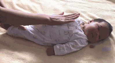 再双手并排,从宝宝胸口向下轻抚至大腿根,做8次;
