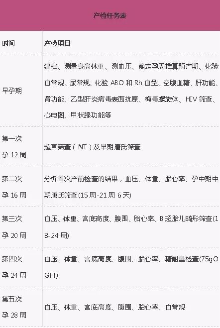 超实用的产检任务表,赶紧收藏吧