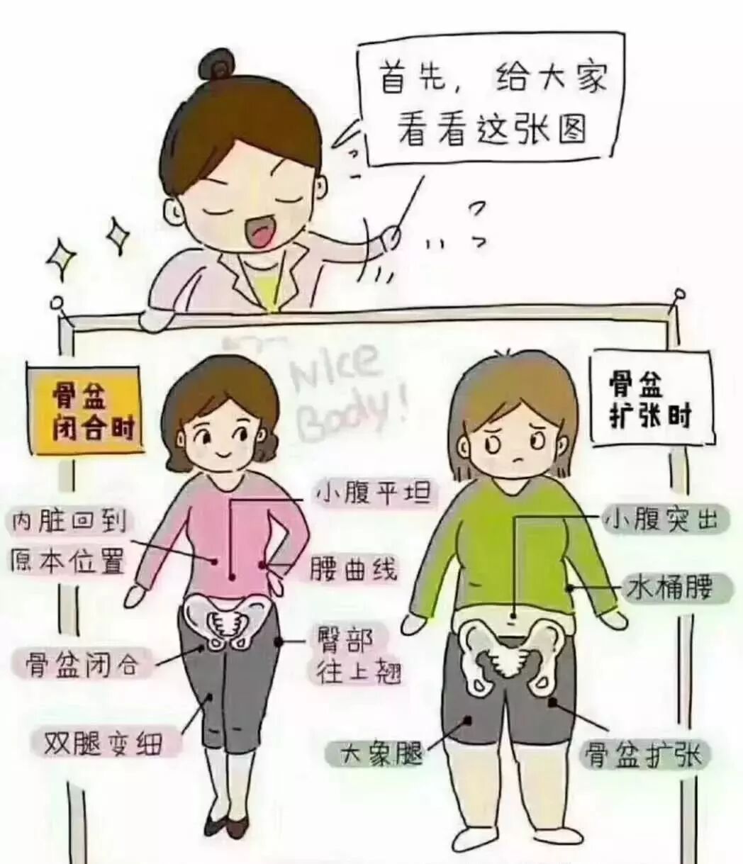 2、内脏会随着骨盆的扩张而往下掉,导致下腹部突出