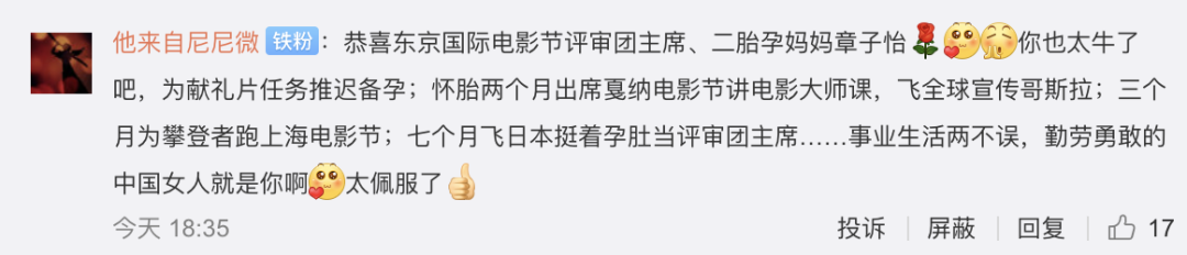 怀孕初期还在拍《攀登者》爬雪山,怀孕3个月宣传电影《哥斯拉》飞遍全球,7月份挺着孕肚当评审团主席……