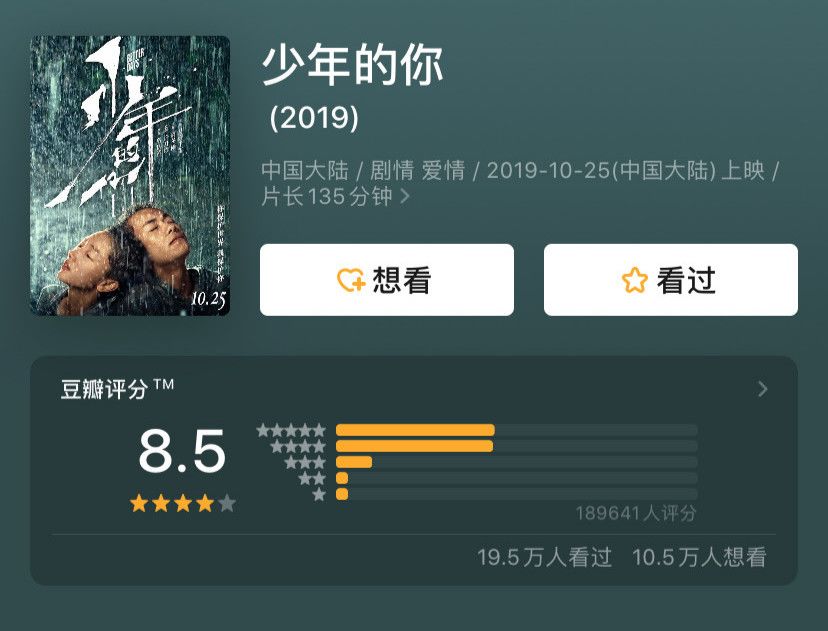 最近大火的电影《少年的你》一上映便迎来了无数掌声,好评不断。仅上映3日,票房便突破3亿。