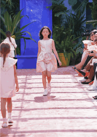 她上T台走秀,自然又不怯场,大气的台风比好多成年人都强;
