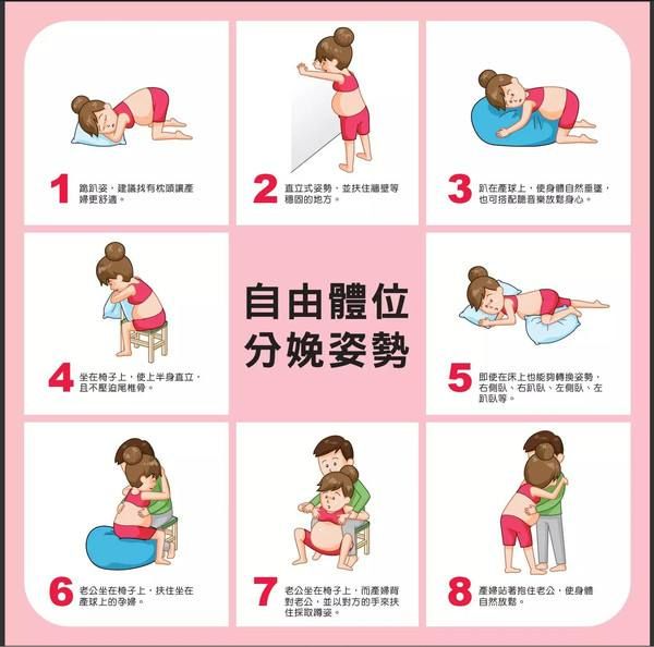 4、经医生同意,可在待产室内行走活动,也可做一些缓解疼痛的动作。如下图: