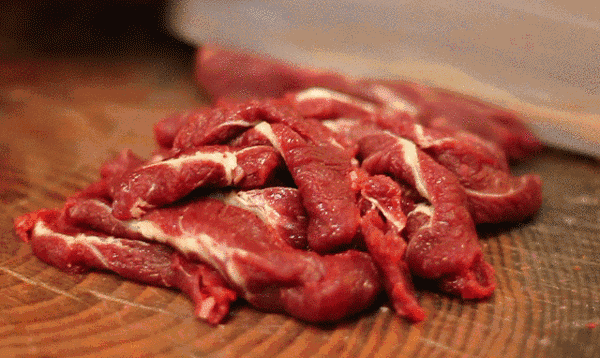 切牛羊肉,要逆着肉的纹理切,刀和肉的纹理呈90度的垂直切出来的肉片,煮熟后容易咬。切猪肉的话,要顺着肉的纹理切,这样切出来的猪肉,炒完后不易散碎。